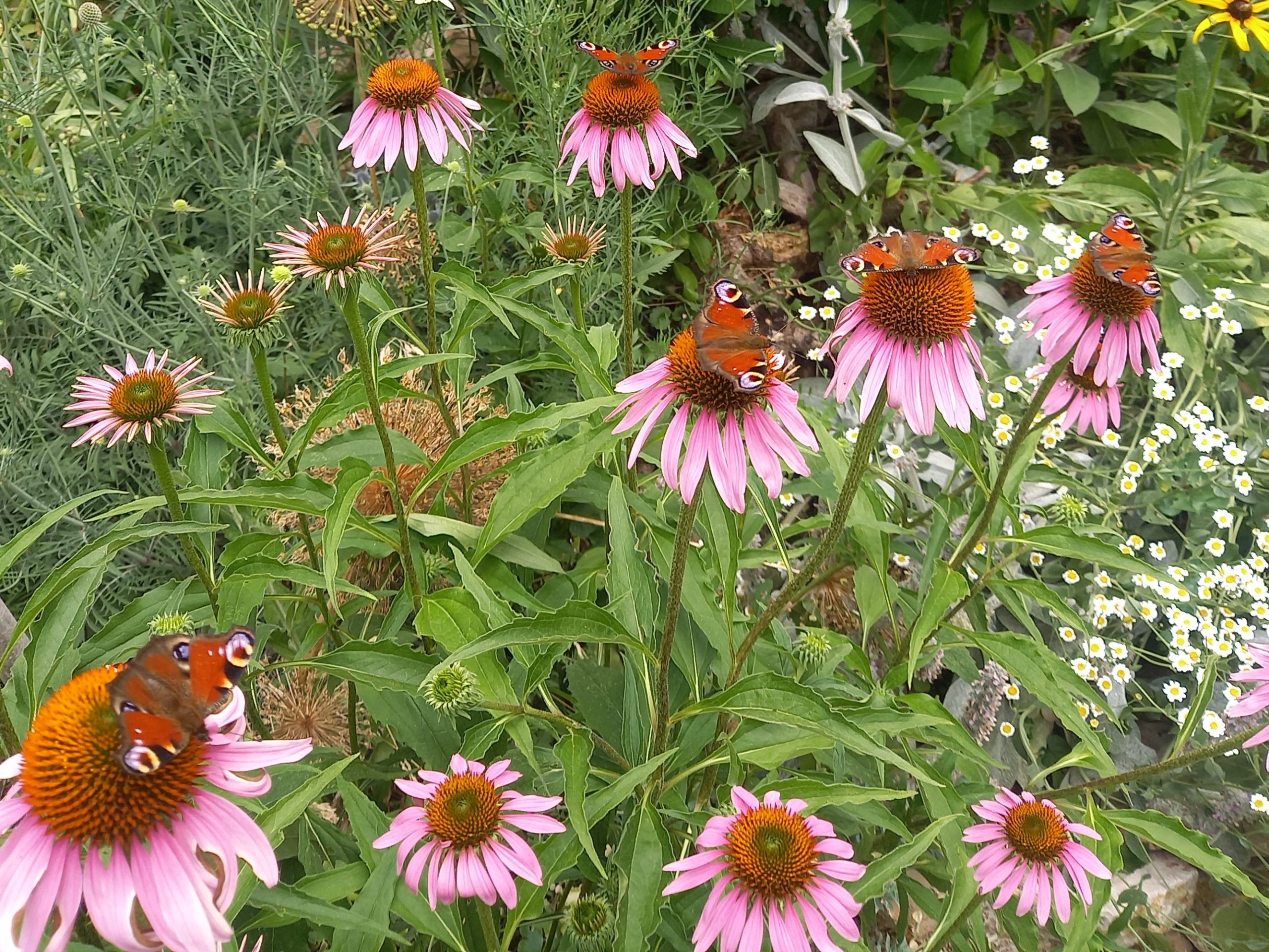 Im Hochsommer blüht es im Garten vor allem gelb. Ich liebe die Sonnenhüte und die Schmetterlinge mögen sie auch.