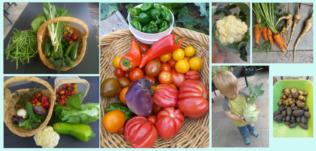 Tomaten gab es dieses Jahr nicht so viele. Das lag aber nicht an Braunfäule, die habe ich mittlerweile sehr gut im Griff, sondern am wechselhaften Wetter. Kürbis und Gurke war es im Frühjahr wohl auch noch zu kalt. Sie haben erst im August angefangen richtig Fruchtansätze zu bilden und da war es dann schon zu spät, weil es im September schon ziemlich kalt geworden ist.