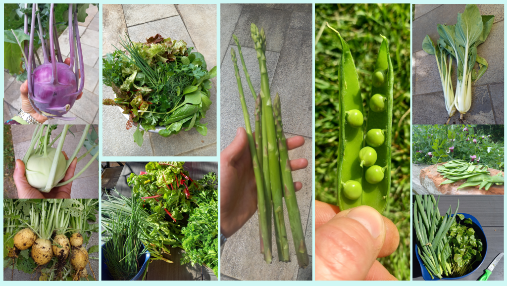 2024 habe ich bei meiner Anbauplanung die Fruchtfolge mit Vor-, Haupt- und Nachkultur angewendet, um das ganze Jahr über möglichst viel ernten zu können. Dadurch konnte ich dieses Jahr im Mai / Juni schon viel mehr ernten als die Jahre zuvor: Kohlrabi, Mairüben, verschiedene Salate, Wintererbsen, Pak Choi, Zuckerschoten, nochmal Kohlrabi, Zwiebeln. Diese frühen Ernten hat nicht nur der Überwinterungsanbau (z.B. Wintererbsen und Wintersteckzwiebeln), sondern auch meine kleine Anzuchtstation ermöglicht.