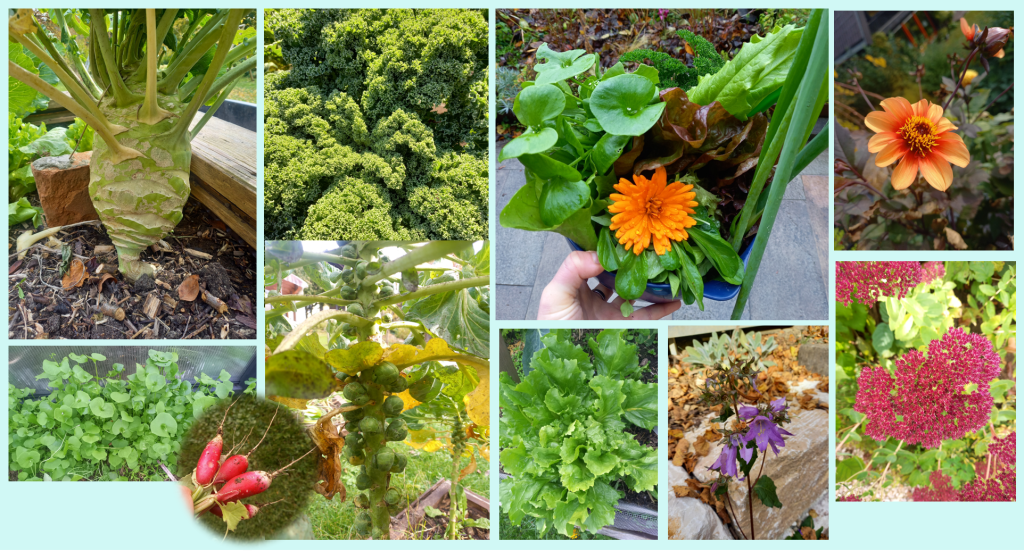 Ich glaube ich konnte noch nie so viel und vielfältig Salat ernten wie diesen Herbst. In den letzten Jahren war es dem Salat im Spätsommer immer noch zu heiß. Dieses Jahr hat sogar der Postelein schon im August gekeimt und der Feldsalat hat sich endlich wieder selbst versamt. Immerhin einen Vorteil, den kühle Perioden im Sommer mit sich bringen.
