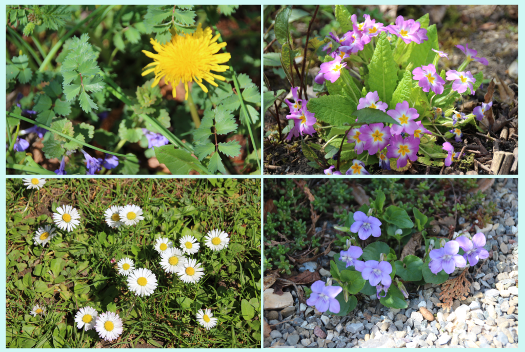 Überall strahlen gerade die gelben Blüten des Löwenzahnes. In der Wiese dürfen sie bleiben, in den Staudenbeeten entferne ich sie konsequent. Neben dem Löwenzahn blühen jetzt auch die Gänseblümchen um die Wette und dank der verschiedenen Kleinklimazonen in meinem Garten darf ich mich schon seit über einem Monat über blühende Veilchen freuen, die sich mittlerweile überall im Garten verteilt angesiedelt haben. Die Primeln sind noch nicht so wanderlustig, hier habe ich nachgeholfen, dass sie auch überall im Garten zu finden sind. Ich träume noch von einer Wiese voller bunter Primeln, wie in den alten Gärten in unserem Wohngebiet.