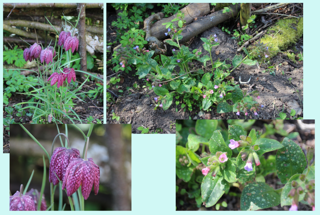 Meine Frühlingslieblinge dieses Jahr sind diese prachtvolle Schachbrettblume und das gefleckte Lungenkraut. Schachbrettblumen kaufe ich gerne für die Frühlingsbepflanzung meiner Töpfe auf der Terrasse und vor der Haustür. Anschließen pflanze ich sie dann in den Garten, aber dass sie im zweiten Jahr wieder so prächtig blüht, habe ich bisher noch nie geschafft. Da habe ich wohl einen idealen Standort gefunden. Das gefleckte Lungenkraut habe ich als kleinen Ableger letztes Jahr von einer Dienstreise mitgebracht und auch für sie habe ich glücklicherweise einen Wohlfühlort gefunden.