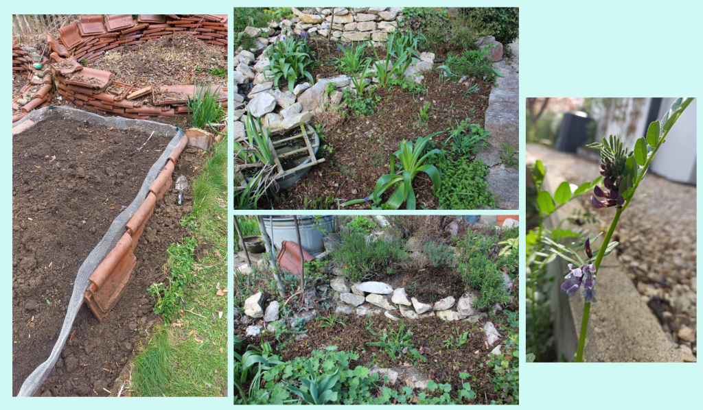 - Meine Staudenbeete habe ich zwar so angelegt, dass sie möglichst wenig Arbeit machen, aber im Frühjahr sollte man einmal schauen, dass nur das da wächst was auch gewünscht ist. Hier bin ich aber mittlerweile entspannt geworden und lass auch die Natur mitgestalten. In einem Beet darf jetzt die Zaun-Wicke (s. Foto) als nützliche Insektenpflanze bleiben und in einem anderen Beet versamen sich die Knäuelglockenblumen fleißig, so dass meine gepflanzten Gauras/Prachtkerzen keine Chance hatten. Die Gauras haben diesen Winter nicht überlebt. Zu den Knäuelglockenblumen werde ich noch Schafgarbe pflanzen und dann sieht das sicher auch den ganzen Sommer über attraktiv aus.