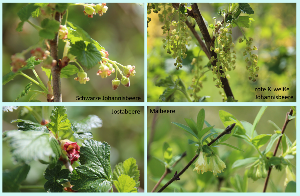 Besonders die Johannisbeeren und Jostabeeren haben uns von Anfang an mit vielen Beeren beglückt. Auch dieses Jahr sieht die eher unscheinbare Blüte vielversprechend aus.